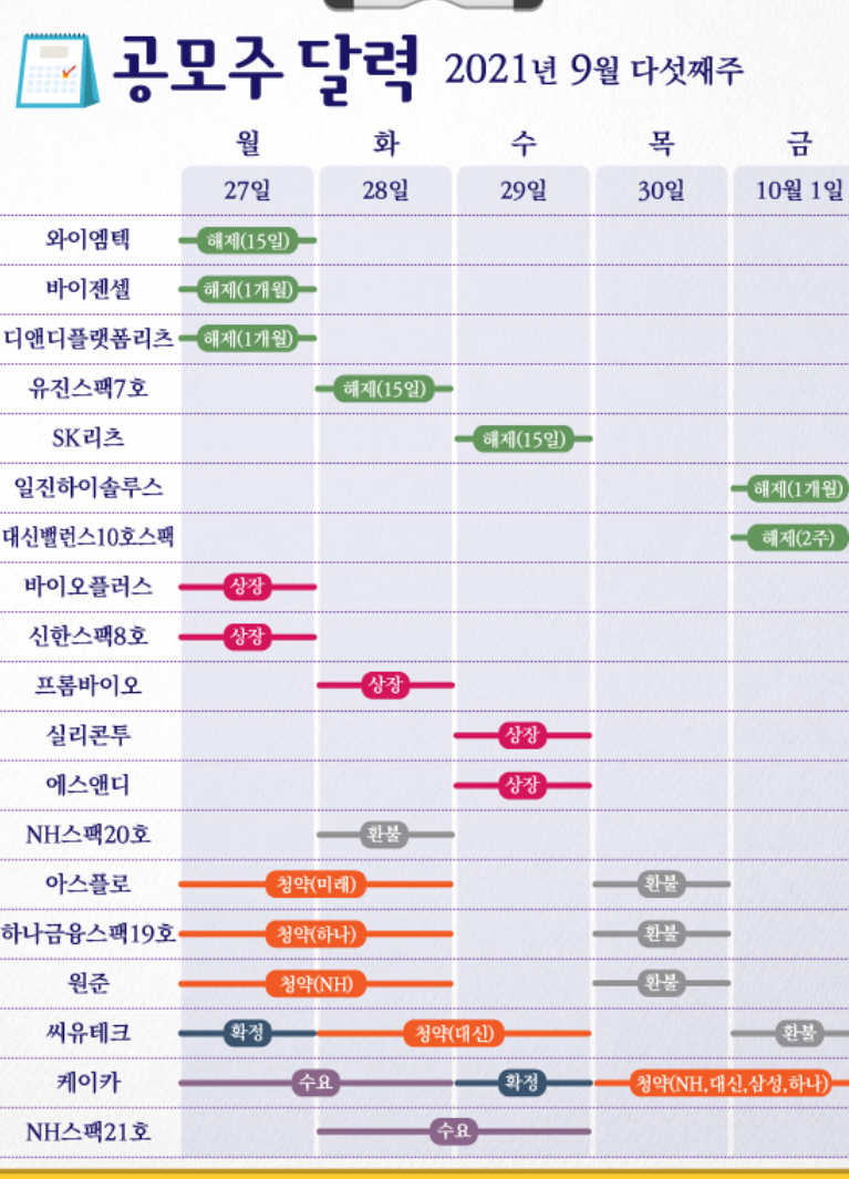 2021.09.20 - [공모주 이야기] - 2021년 9월 공모주 청약 일정 안내 : 원준, 아스플로, 씨유테크에 주목하자!!
