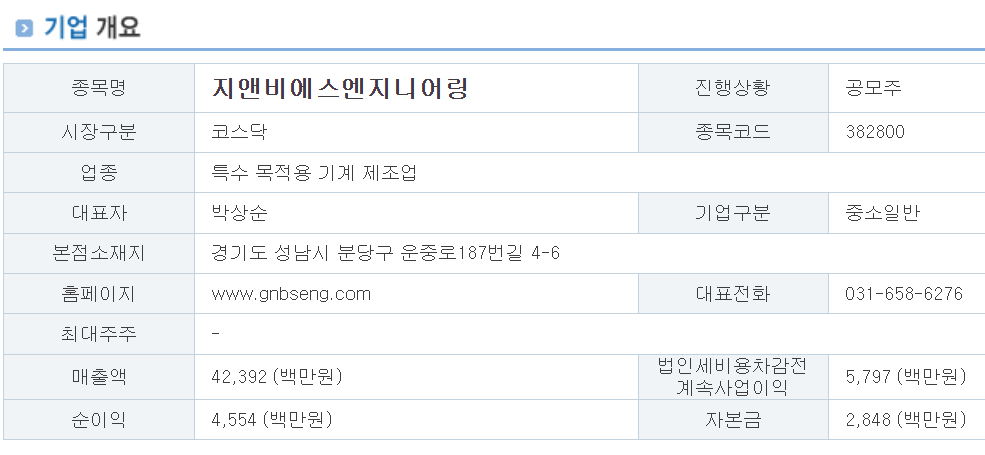 지엔비에스 엔지니어링 올해 상반기 실적에서 어닝 서프라이즈를 보여주면서 재무 안정성이 강화되고 있는 추세이기에 적절한 공모가 산정을 한 것 같습니다. 제 눈에는 좋아 보이는데 과연 기관 경쟁률이 어떻게 나올 지 기대되네요.