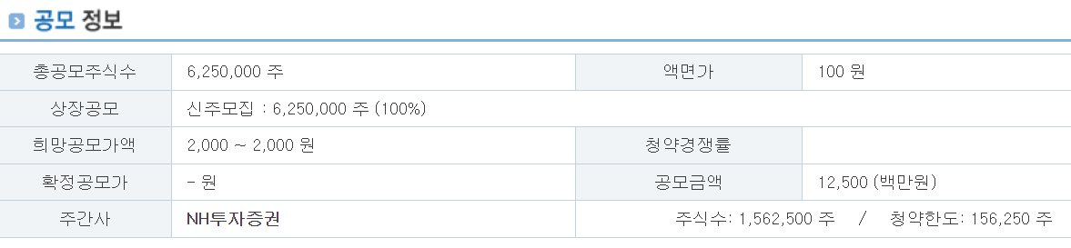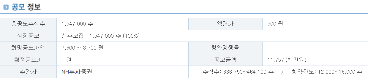 청약 주관사 : NH투자증권
