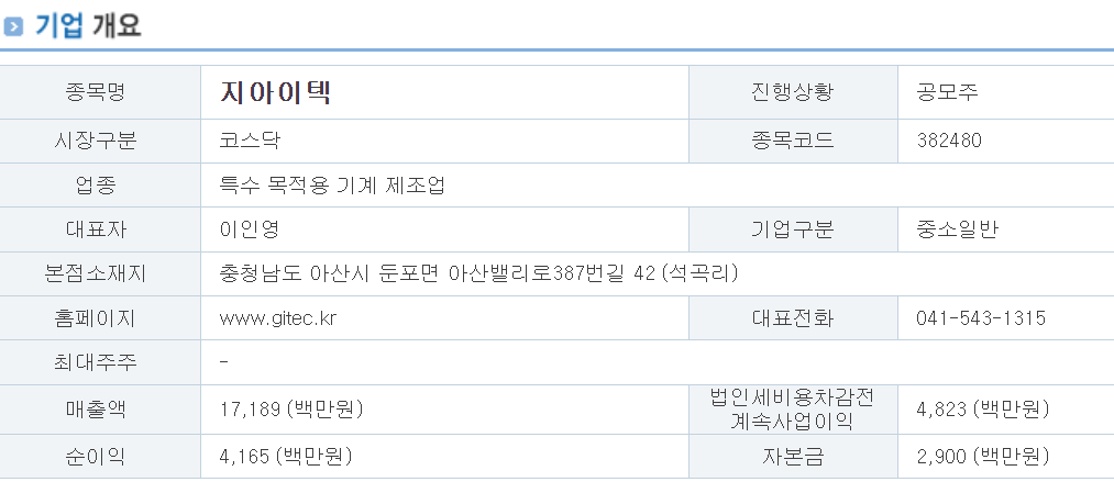 지아이텍은 2차 전지 및 디스플레이 관련 장비 제조 업체입니다. 지아이텍 공모 규모는 354억원인데요. 10월 공모주 중에서 두 번째로 크고 구주 매출 비율은 높지만 기존 주주의 유통 가능 금액은 없습니다.