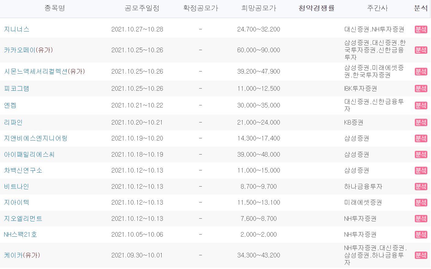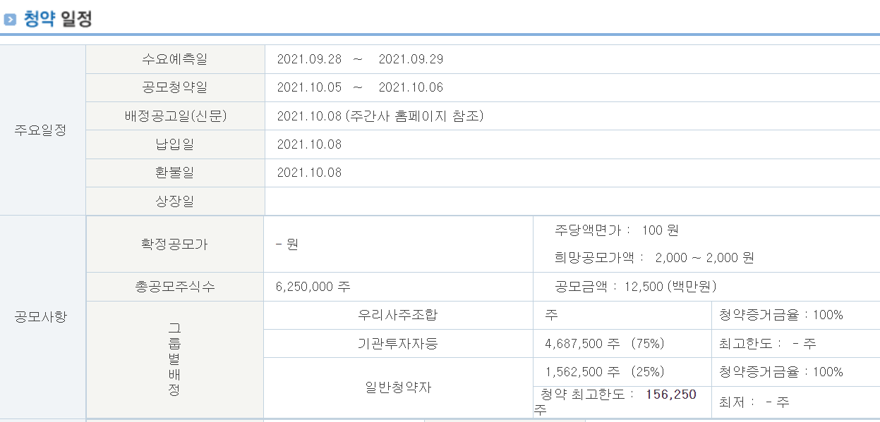 공모주 청약 일정 : 2021.10.20~10.21