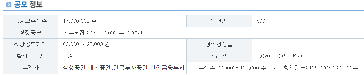 청약 주관사 : 대신증권, 신한금융투자