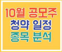 이번 포스팅에서는 10월 공모주 청약일정에 대하여 소개하겠습니다. 오늘 포스팅을 전체적으로 읽고 나면 10월 공모주 청약일정 그리고 청약 예정인 주식들에 대해서 전반적인 지식이 생기실 겁니다.
