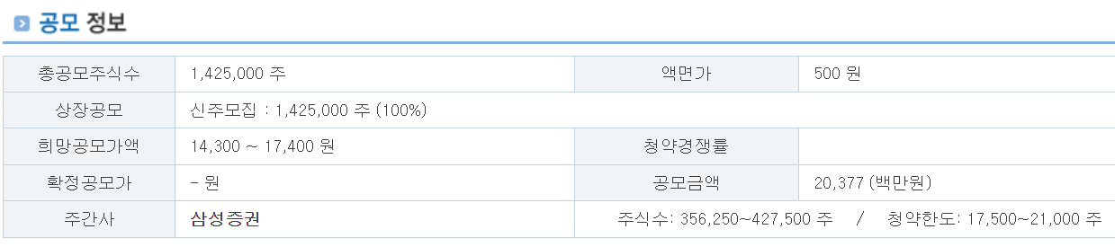 희망 공모가 : 14,300~17,400원