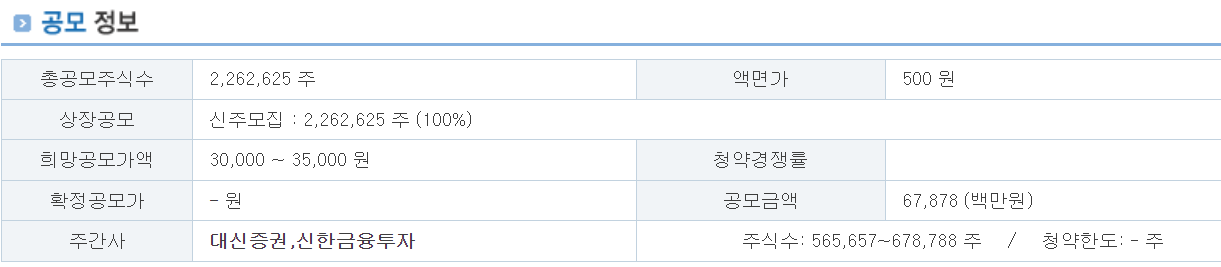 청약 주관사 : 삼성증권, 대신증권, 한국투자증권, 신한금융투자
