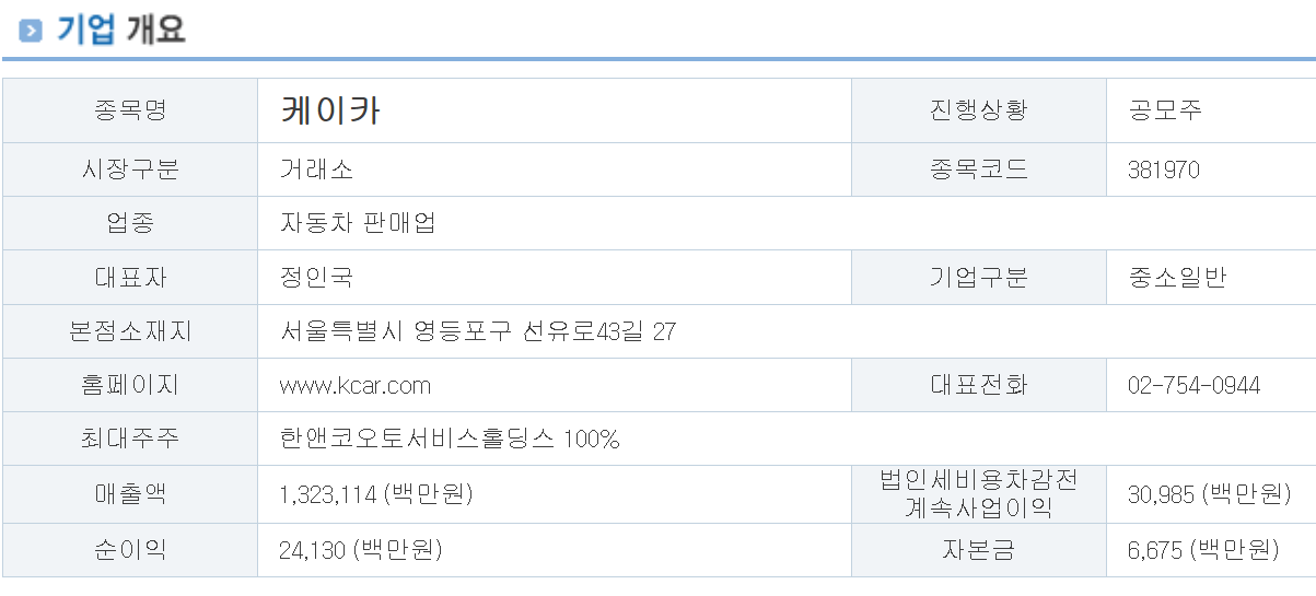 3. 케이카 공모주 청약 정보