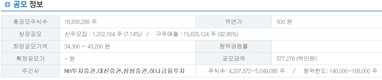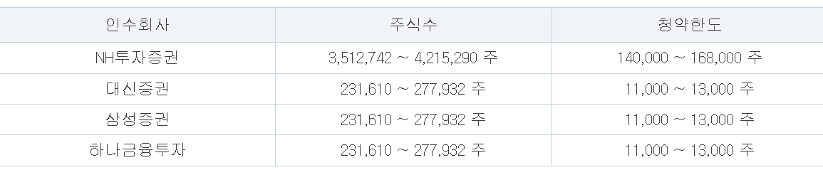 청약 주관사 : NH투자증권, 삼성증권, 대신증권, 하나금융투자