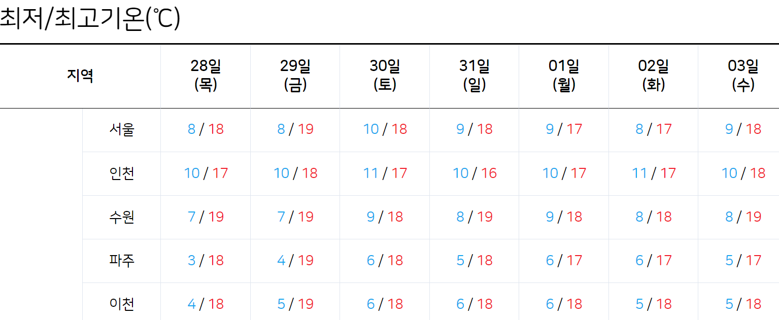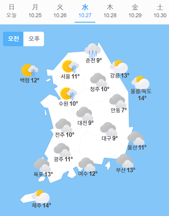 10월 25일 서울 날씨 그리고 전국 날씨 알려 드립니다.