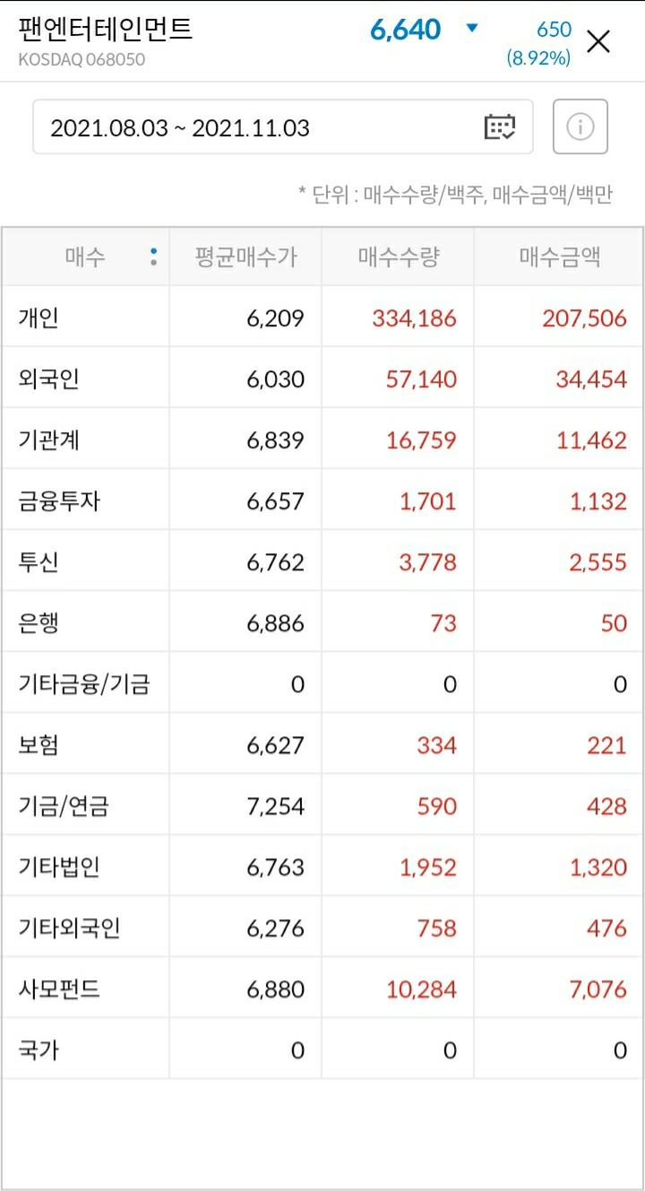 참고로 지금 매수 주체들 중에서 제일 수량이 많은 개인, 외국인, 기관계, 사모펀드의 평균 가격이 6,500원 정도인데
